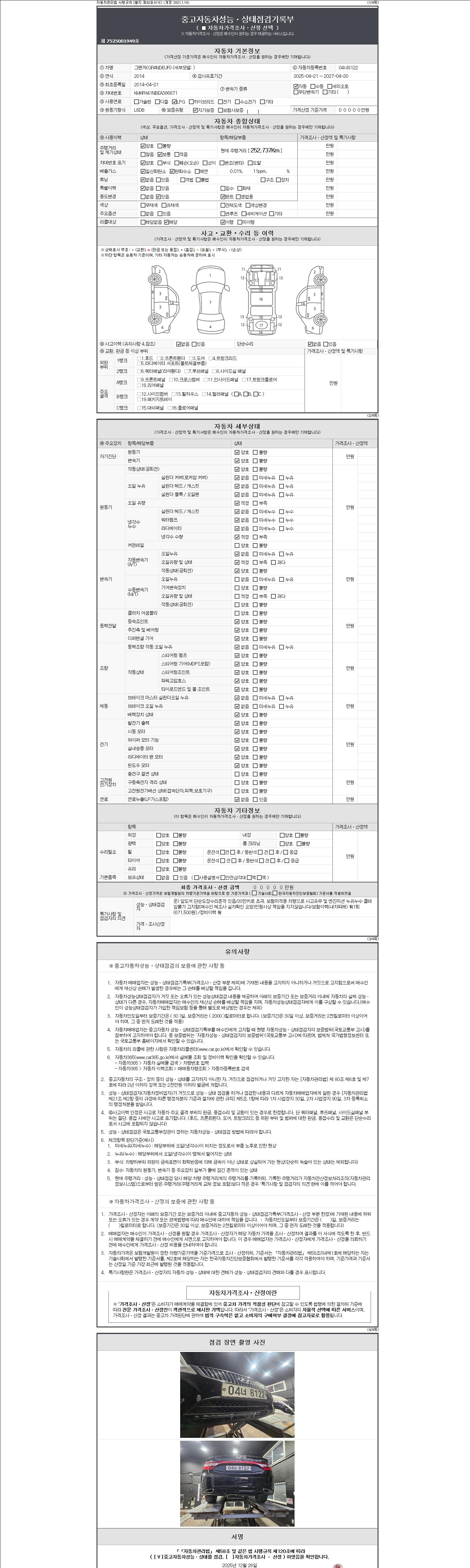 2. 차량 등록증이나 성능점검지 등을 상담자에게 요청및 확인하시고 사전에 미리 점검 하시기를 권유드립니다.