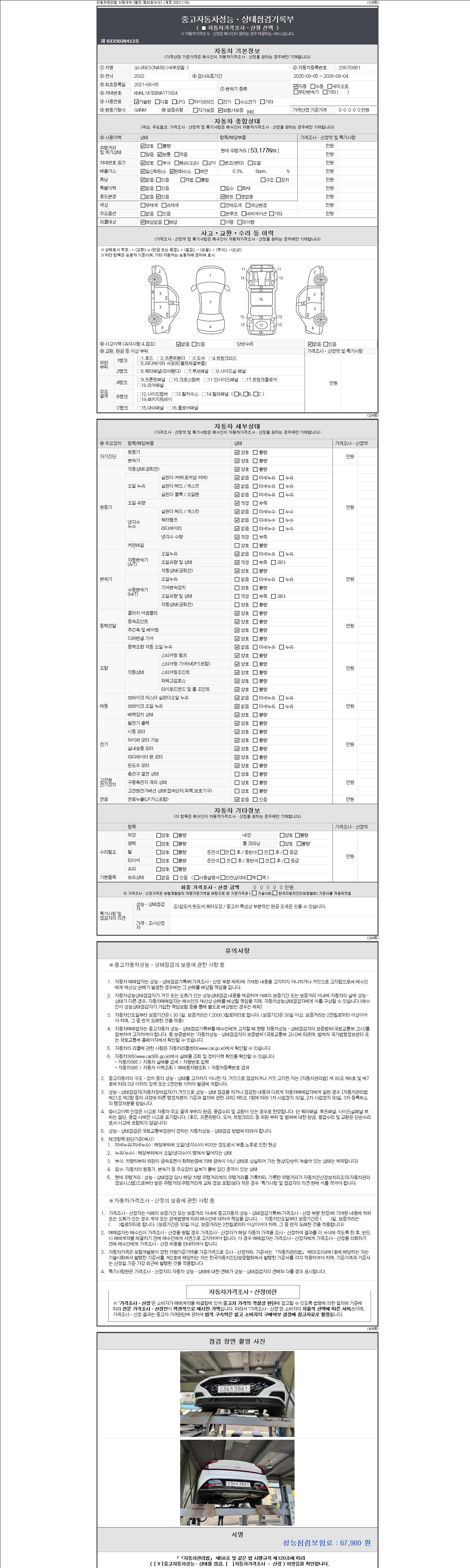 2. 차량 등록증이나 성능점검지 등을 상담자에게 요청및 확인하시고 사전에 미리 점검 하시기를 권유드립니다.