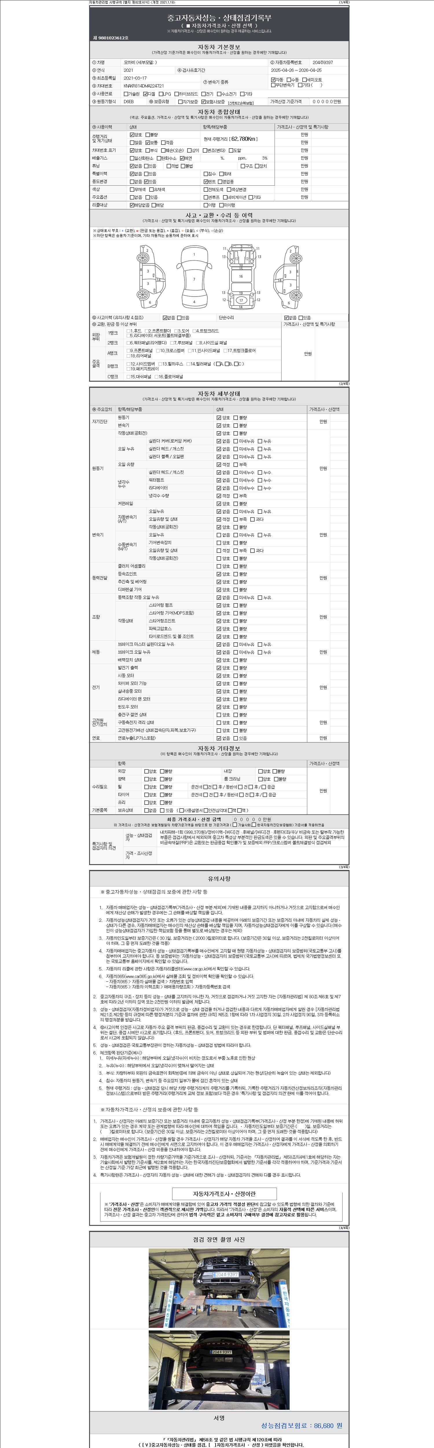 2. 차량 등록증이나 성능점검지 등을 상담자에게 요청및 확인하시고 사전에 미리 점검 하시기를 권유드립니다.
