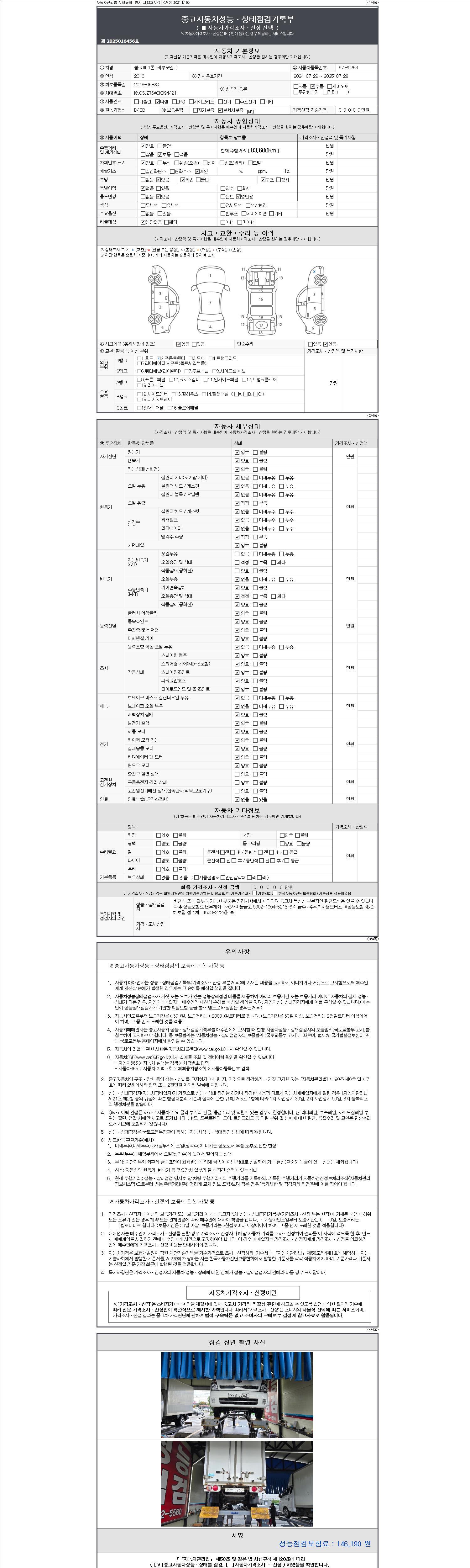 2. 차량 등록증이나 성능점검지 등을 상담자에게 요청및 확인하시고 사전에 미리 점검 하시기를 권유드립니다.