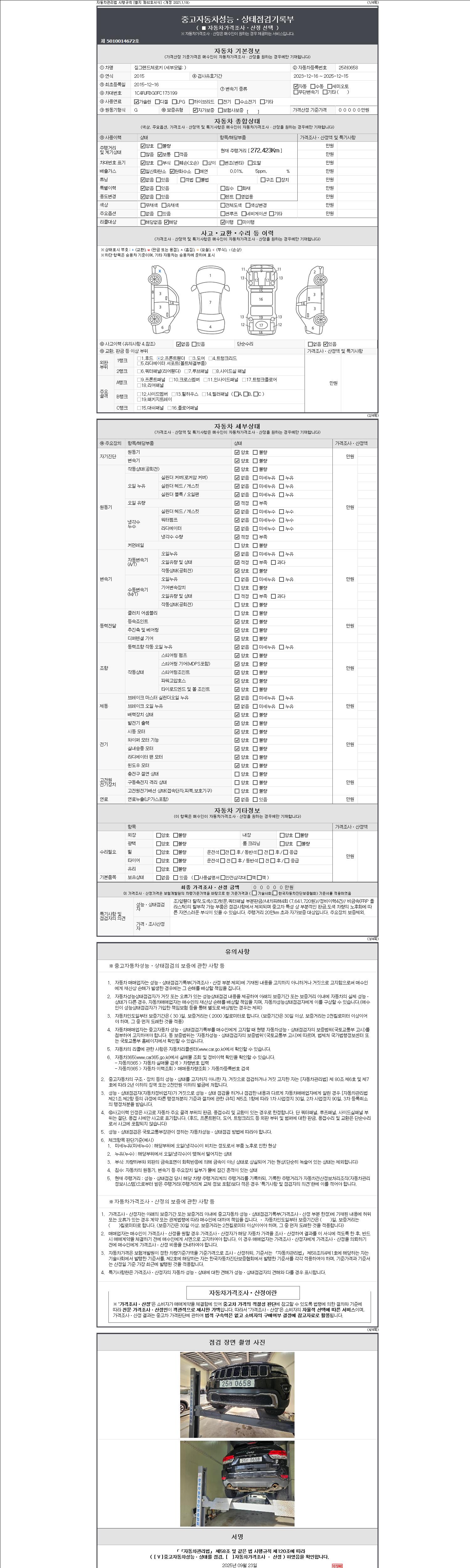 2. 차량 등록증이나 성능점검지 등을 상담자에게 요청및 확인하시고 사전에 미리 점검 하시기를 권유드립니다.