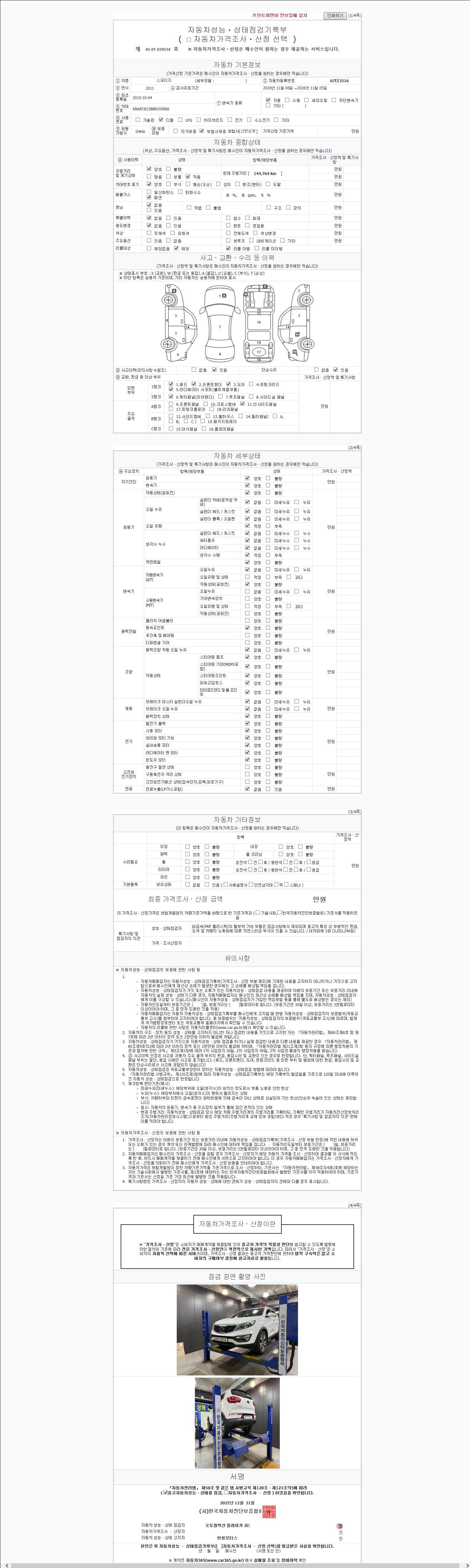 -중고자동차 매매업자를 통해 차량을 구입하실 경우 반드시 "중고자동차 성능, 상태점검 기록부"를 교뷰 받으셔야 하며, 매매업자는 반드시 의무 교부 하여야 압니다.
