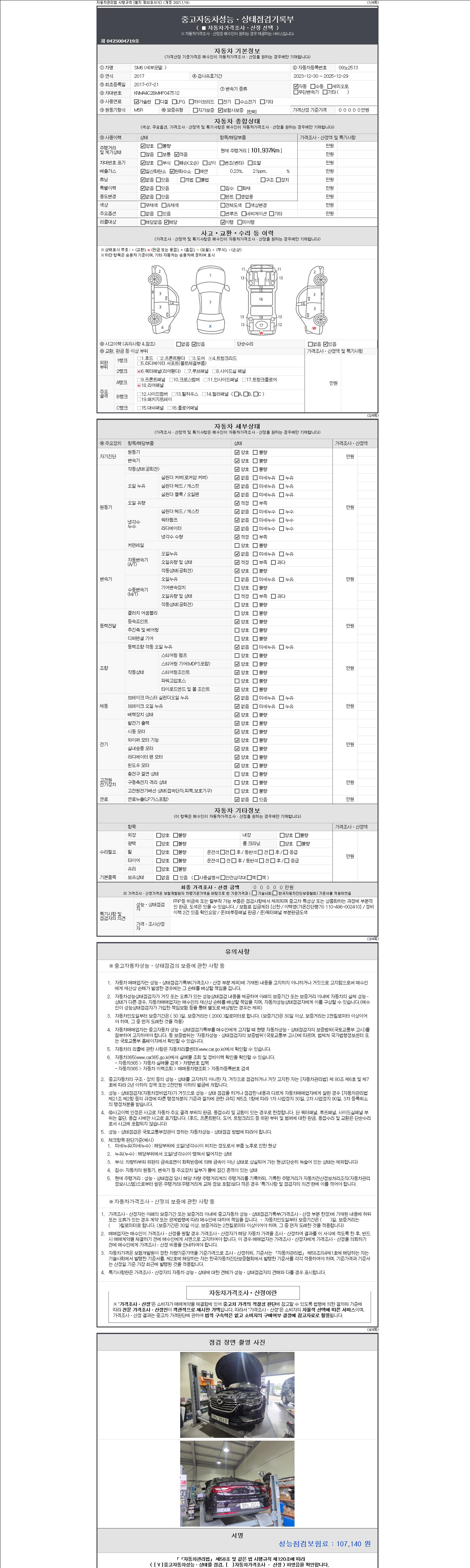 2. 차량 등록증이나 성능점검지 등을 상담자에게 요청및 확인하시고 사전에 미리 점검 하시기를 권유드립니다.