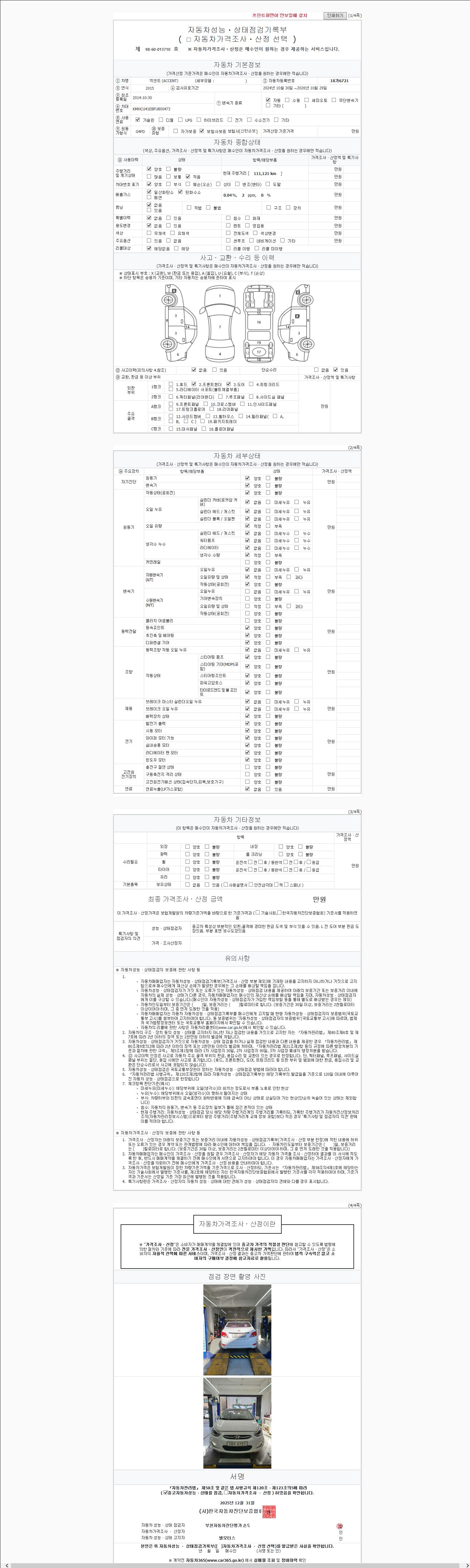 사고유무 성능기록부 참조 제시번호 제 2026003282 호