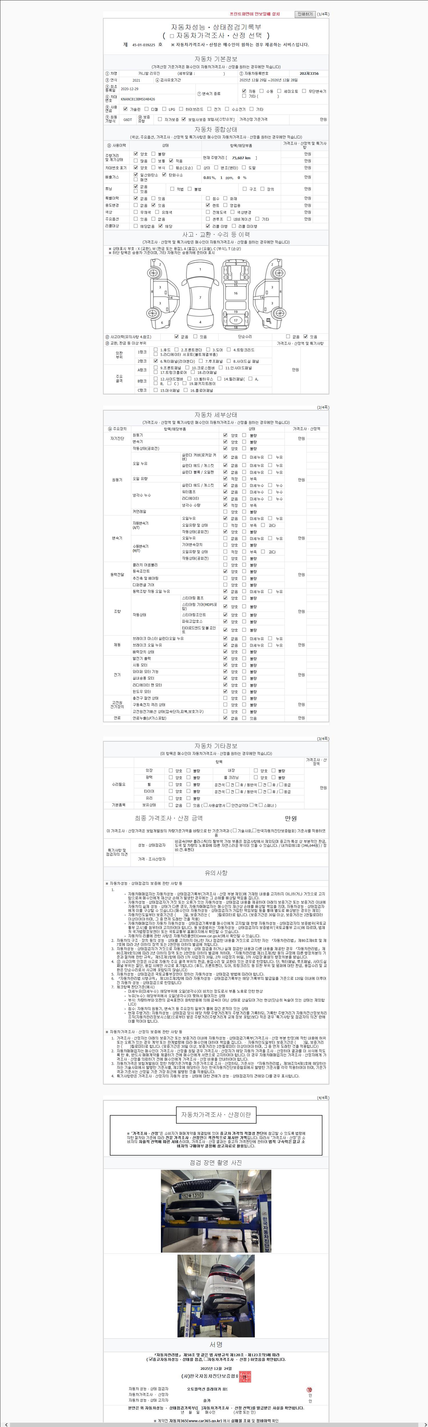 -중고자동차 매매업자를 통해 차량을 구입하실 경우 반드시 "중고자동차 성능, 상태점검 기록부"를 교뷰 받으셔야 하며, 매매업자는 반드시 의무 교부 하여야 압니다.