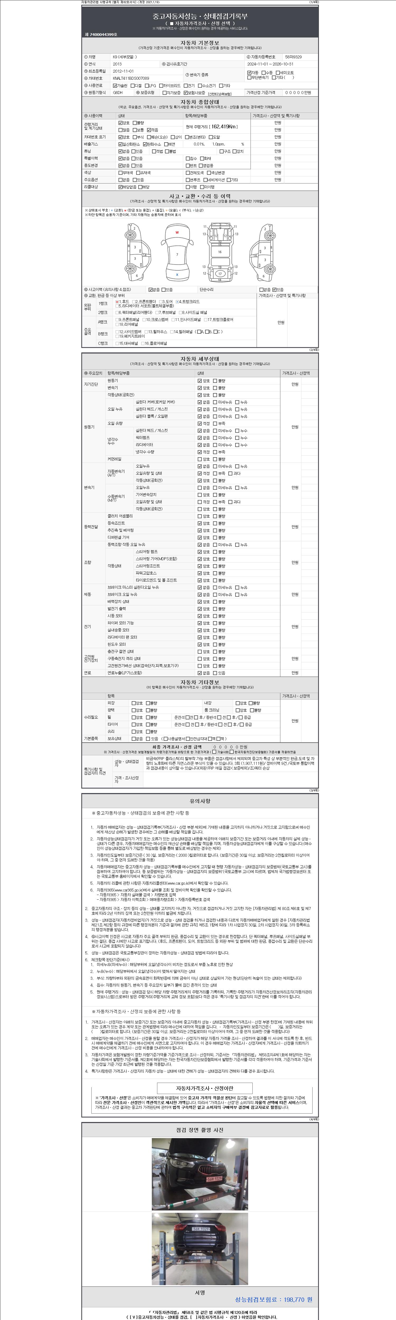 2. 차량 등록증이나 성능점검지 등을 상담자에게 요청및 확인하시고 사전에 미리 점검 하시기를 권유드립니다.
