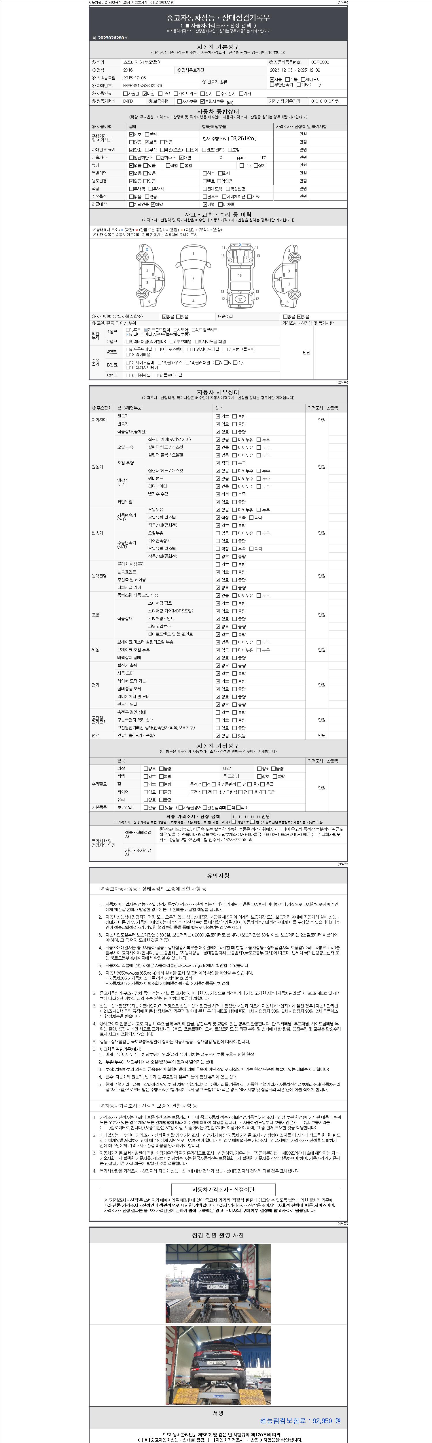 2. 차량 등록증이나 성능점검지 등을 상담자에게 요청및 확인하시고 사전에 미리 점검 하시기를 권유드립니다.