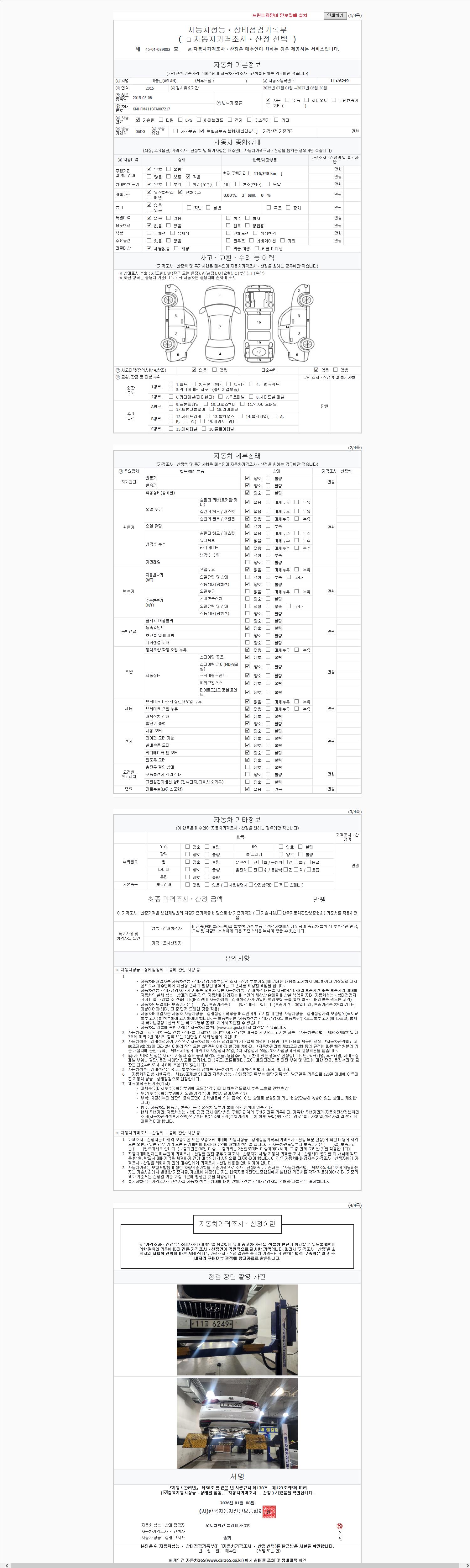 2. 차량 등록증이나 성능점검지 등을 상담자에게 요청및 확인하시고 사전에 미리 점검 하시기를 권유드립니다.