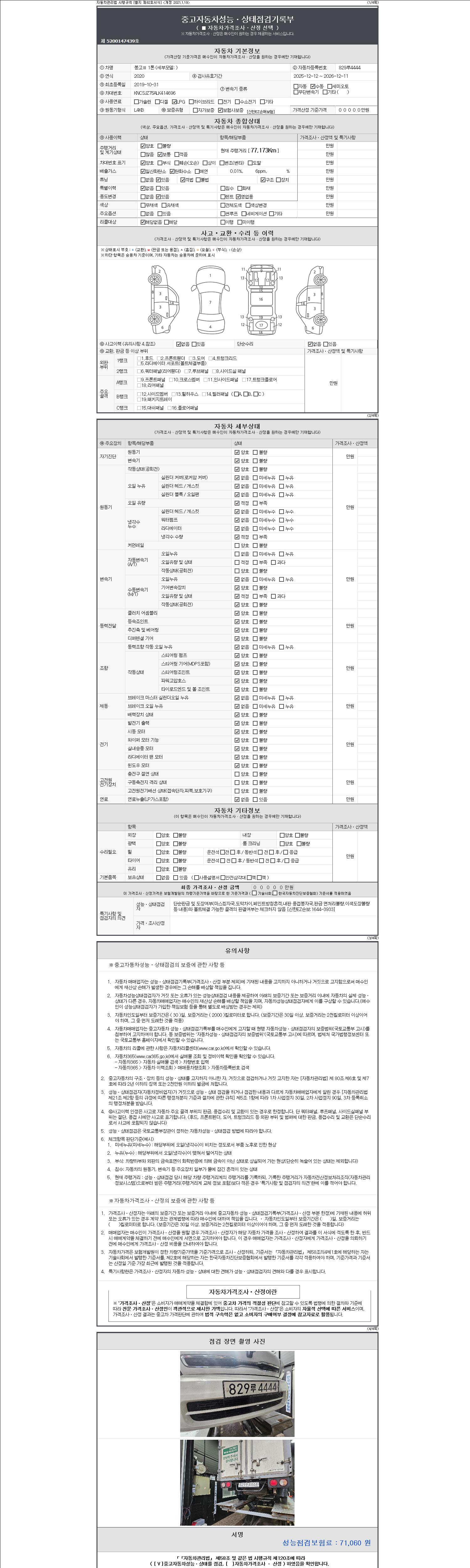 | 주행거리 | 77,173 km | 차량번호 | 829루4444 |