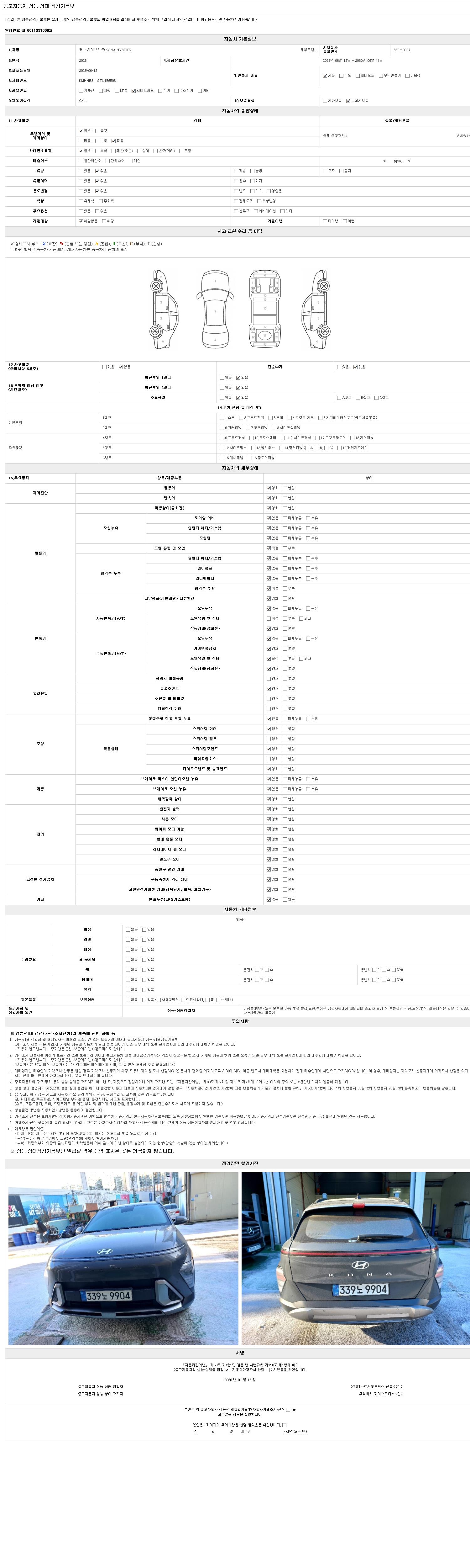 2. 차량 등록증이나 성능점검지 등을 상담자에게 요청및 확인하시고 사전에 미리 점검 하시기를 권유드립니다.