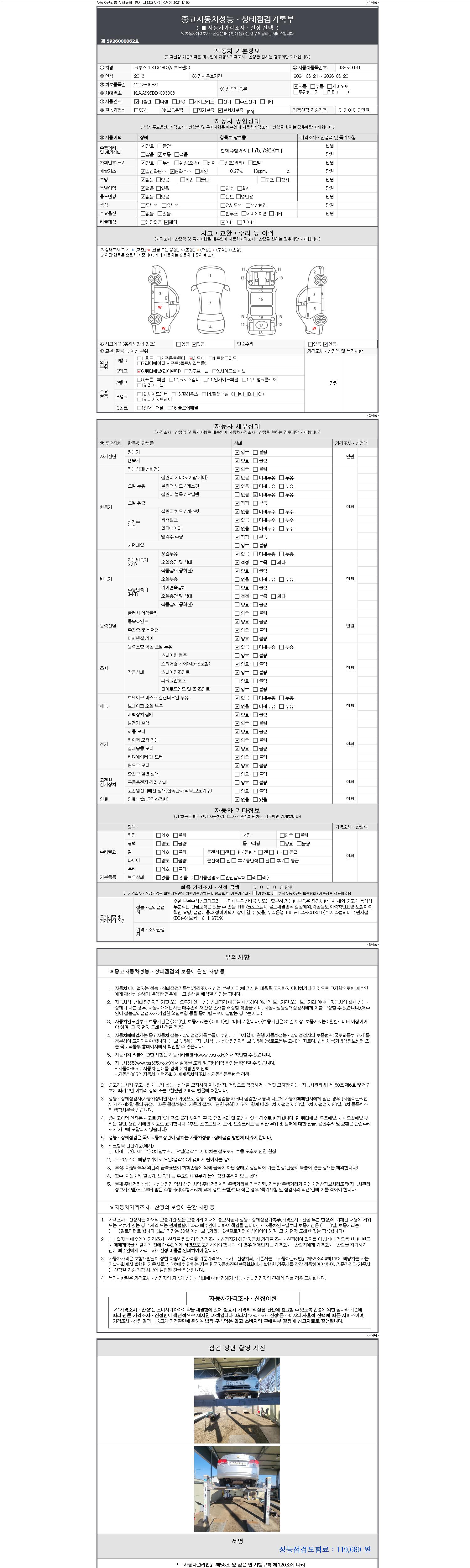 2. 차량 등록증이나 성능점검지 등을 상담자에게 요청및 확인하시고 사전에 미리 점검 하시기를 권유드립니다.