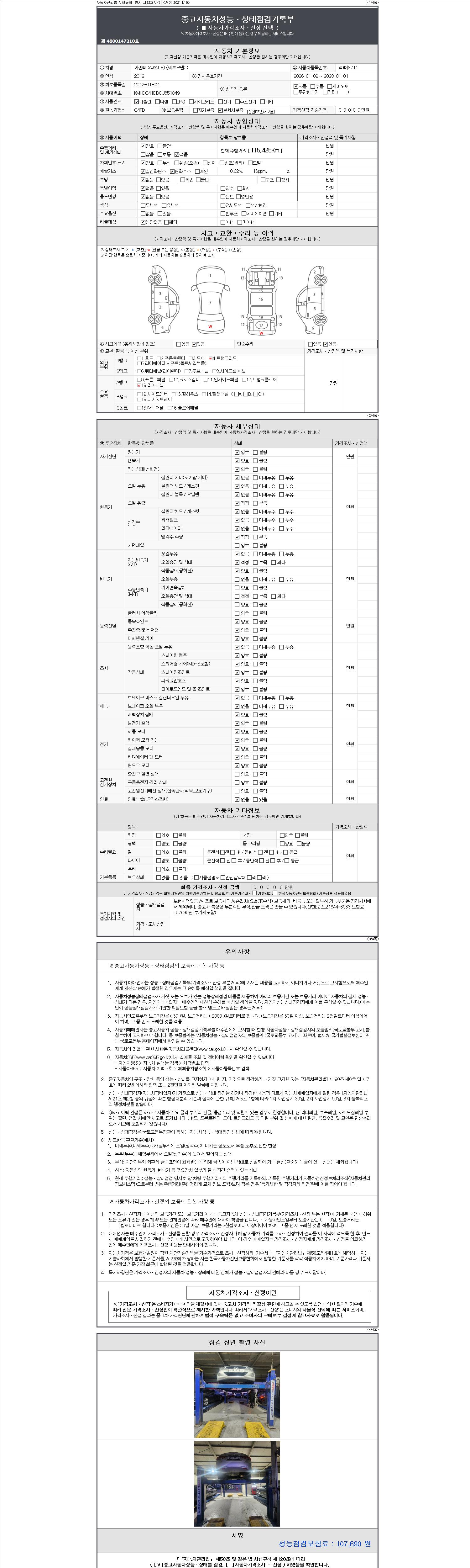 2. 차량 등록증이나 성능점검지 등을 상담자에게 요청및 확인하시고 사전에 미리 점검 하시기를 권유드립니다.