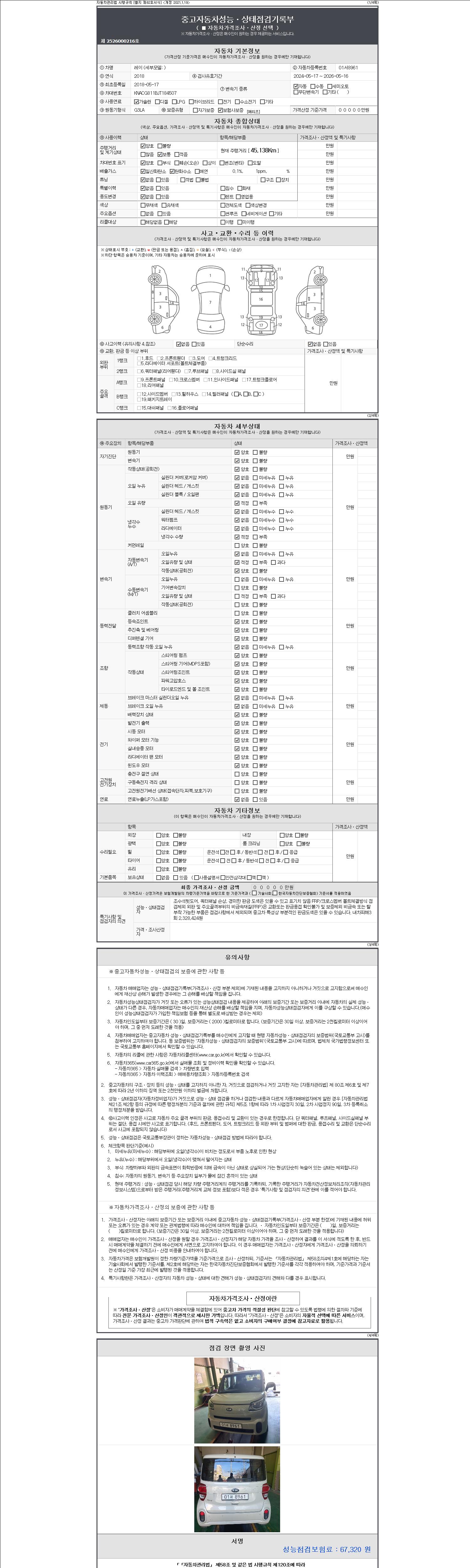 -중고자동차 매매업자를 통해 차량을 구입하실 경우 반드시 "중고자동차 성능, 상태점검 기록부"를 교뷰 받으셔야 하며, 매매업자는 반드시 의무 교부 하여야 압니다.