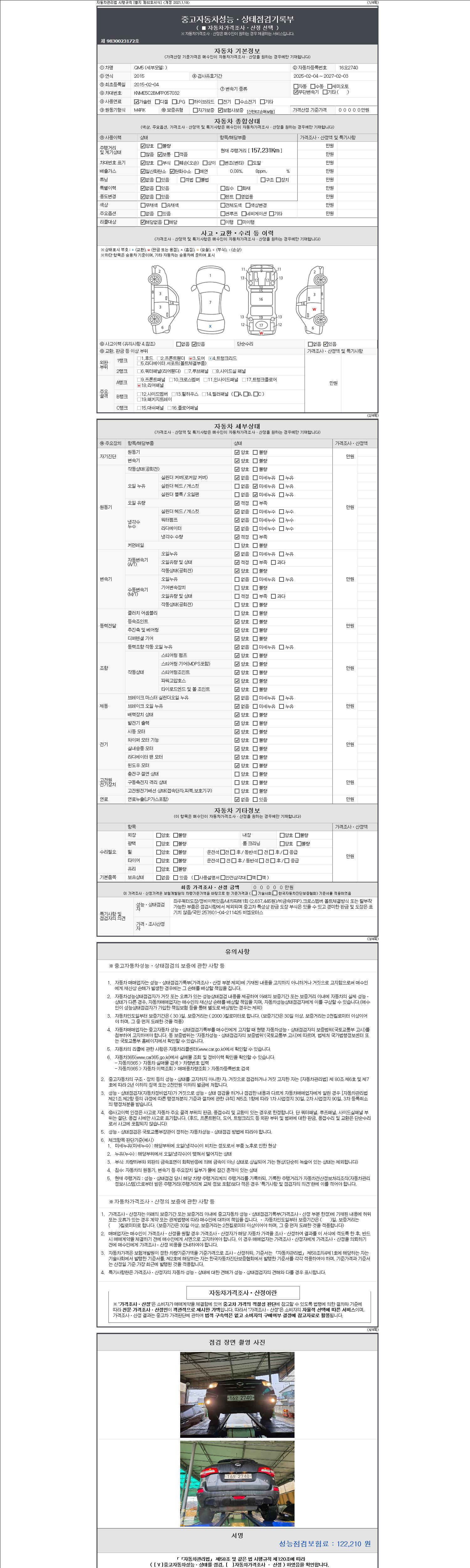 2. 차량 등록증이나 성능점검지 등을 상담자에게 요청및 확인하시고 사전에 미리 점검 하시기를 권유드립니다.