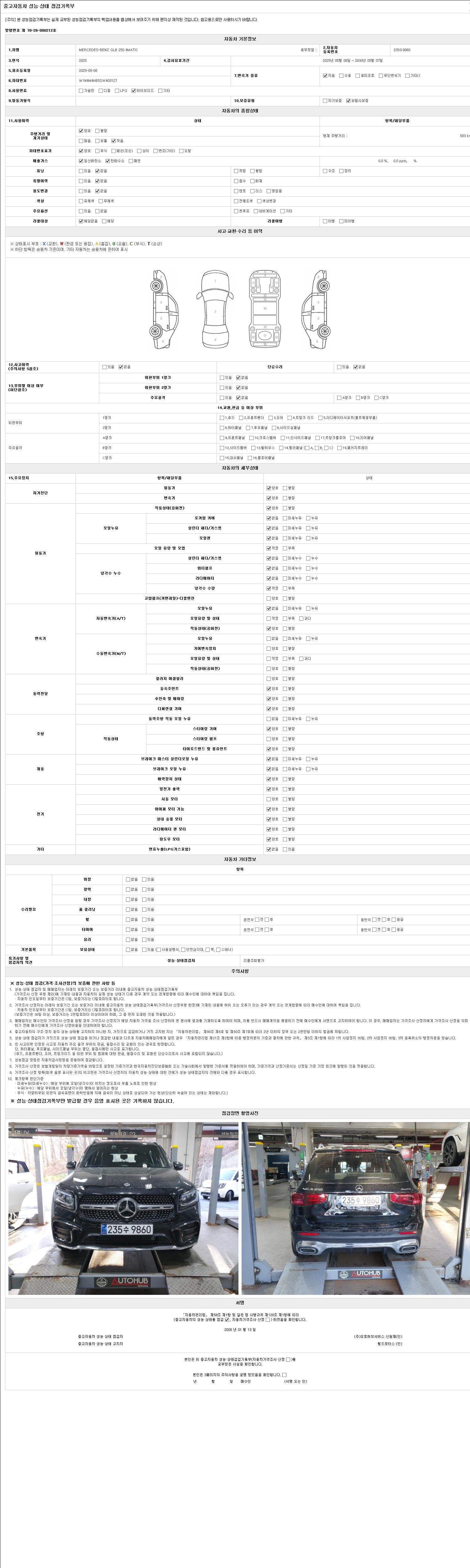 2. 차량 등록증이나 성능점검지 등을 상담자에게 요청및 확인하시고 사전에 미리 점검 하시기를 권유드립니다.