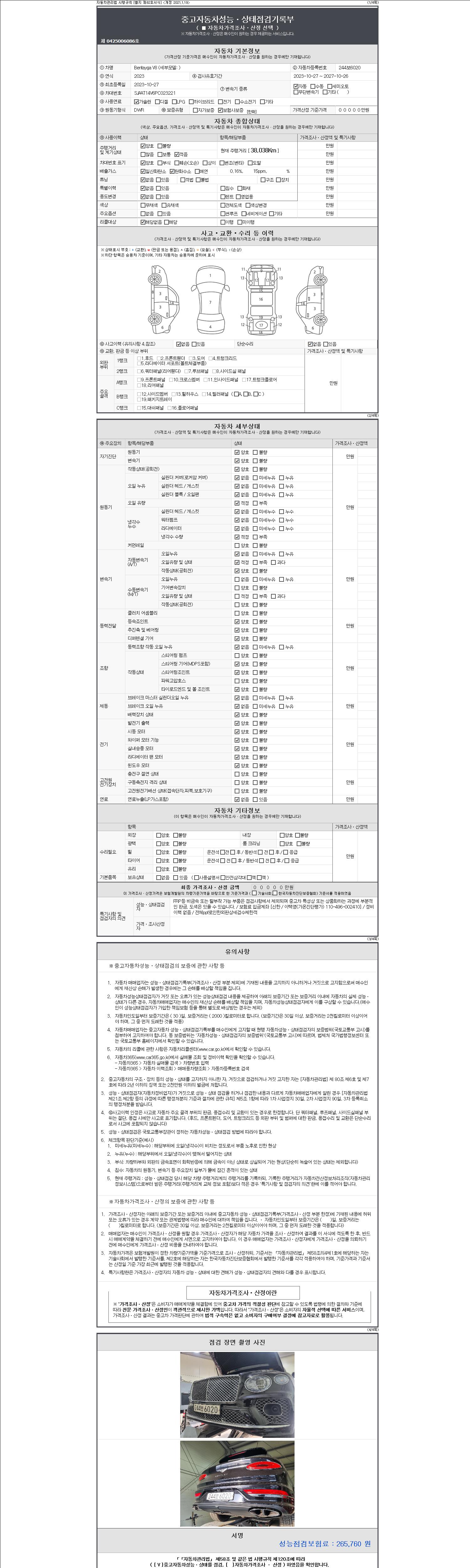-중고자동차 매매업자를 통해 차량을 구입하실 경우 반드시 "중고자동차 성능, 상태점검 기록부"를 교뷰 받으셔야 하며, 매매업자는 반드시 의무 교부 하여야 압니다.
