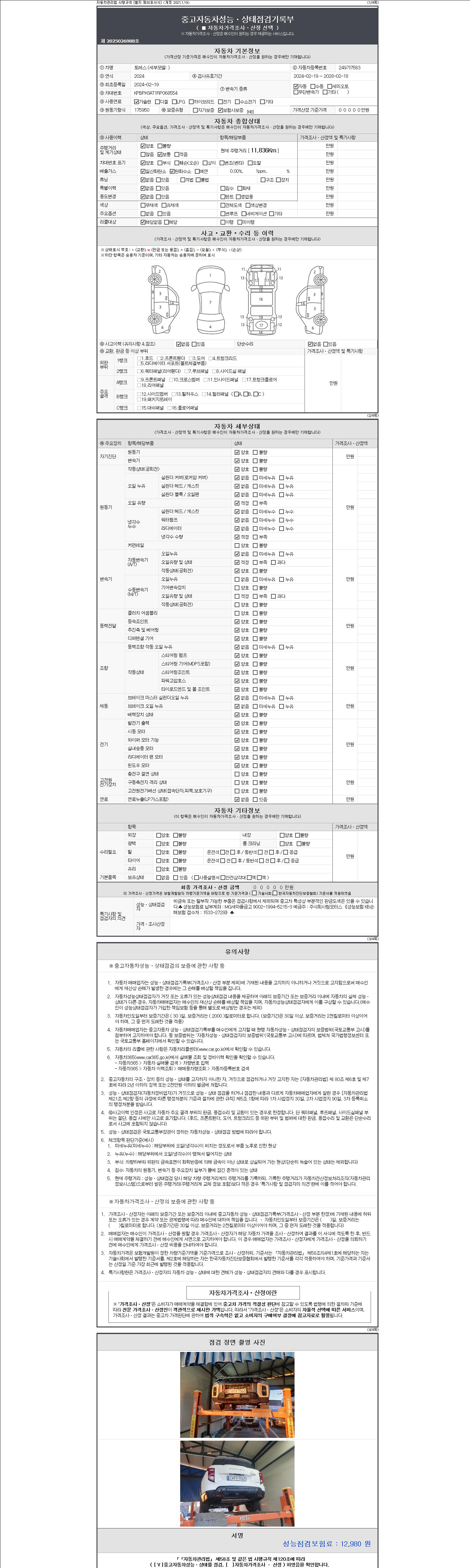 2. 차량 등록증이나 성능점검지 등을 상담자에게 요청및 확인하시고 사전에 미리 점검 하시기를 권유드립니다.