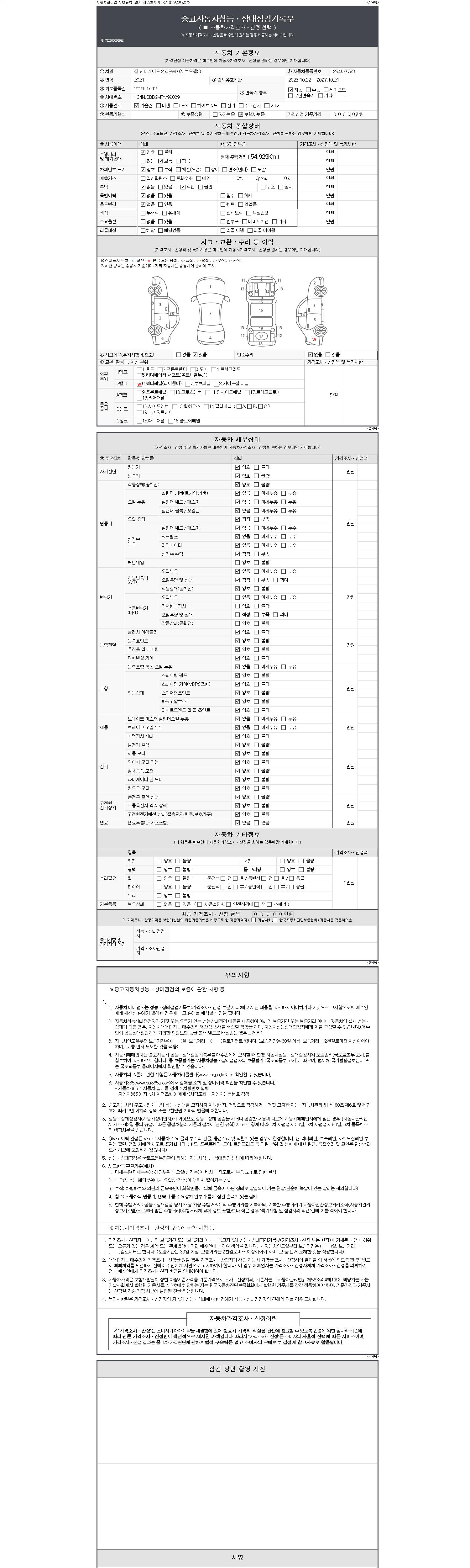 -중고자동차 매매업자를 통해 차량을 구입하실 경우 반드시 "중고자동차 성능, 상태점검 기록부"를 교뷰 받으셔야 하며, 매매업자는 반드시 의무 교부 하여야 압니다.