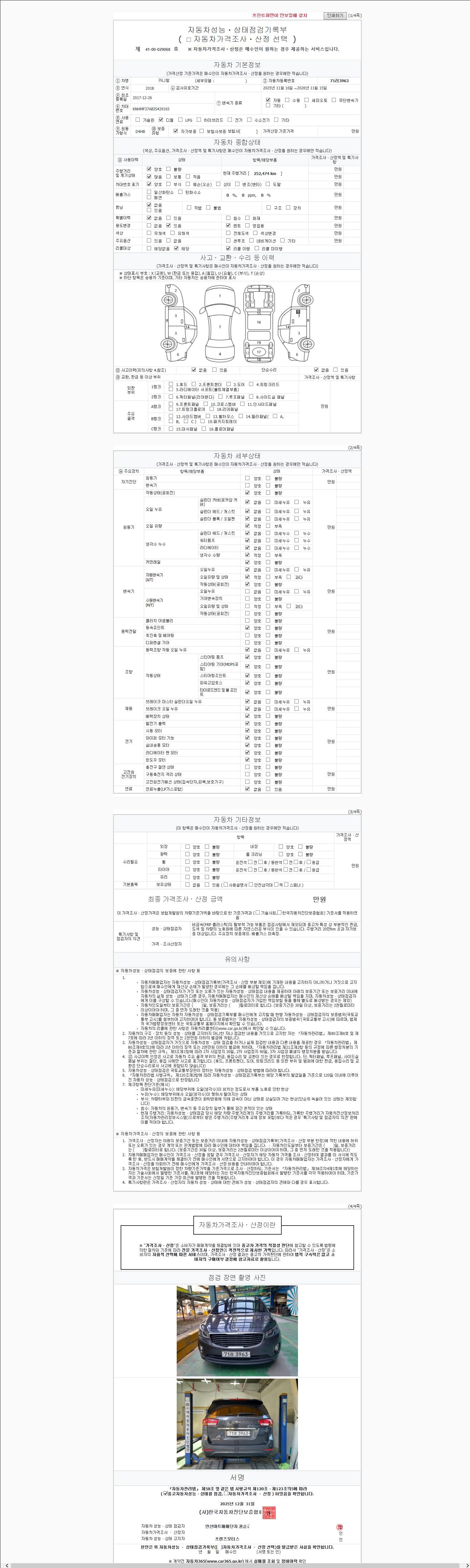 | 주행거리 | 252,474 km | 차량번호 | 71러3963 |