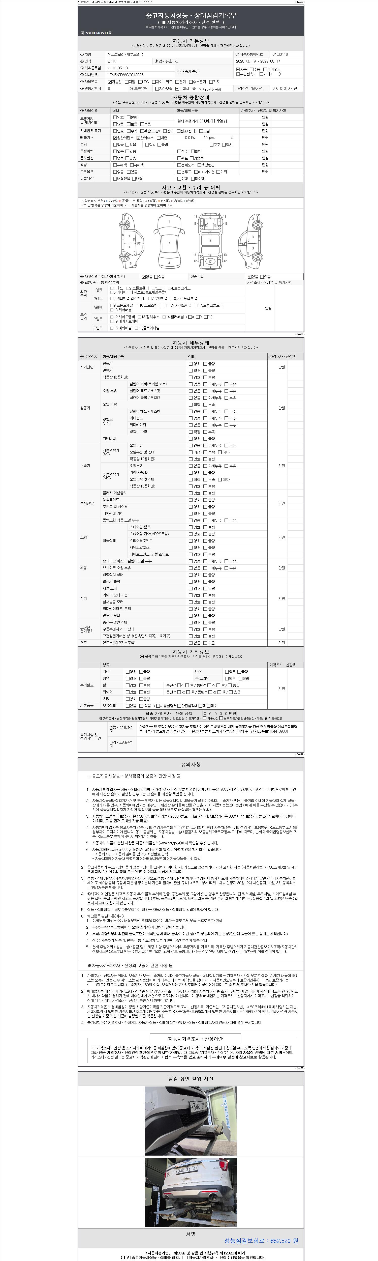 2. 차량 등록증이나 성능점검지 등을 상담자에게 요청및 확인하시고 사전에 미리 점검 하시기를 권유드립니다.