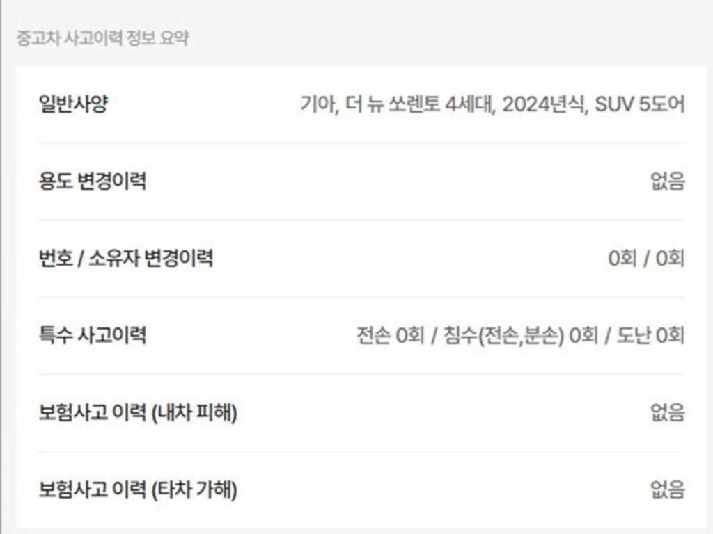 | 사고유무 | ----- | 무사고 |