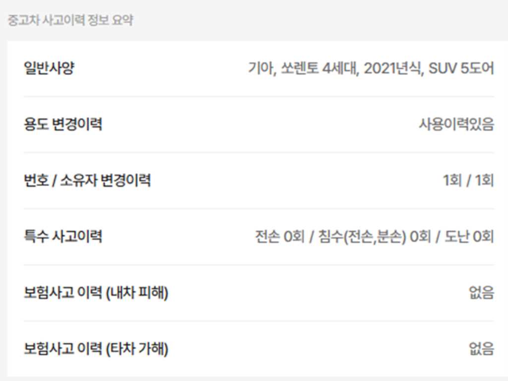 | 사고유무 | ----- | 무사고 |
