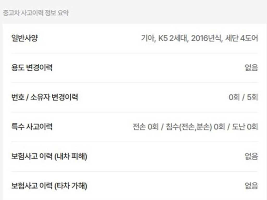 | 사고유무 | ----- | 무사고 |