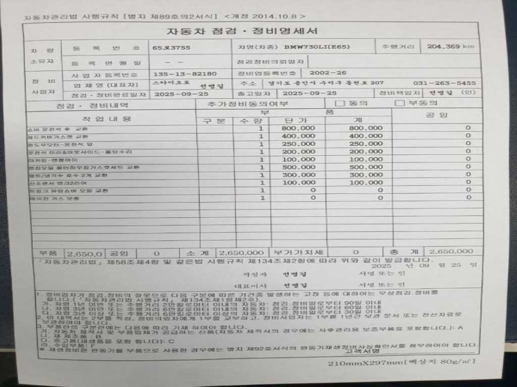 | 차량번호 | ----- | 65로3755 |