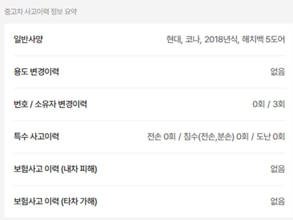 | 사고유무 | ----- | 무사고 |