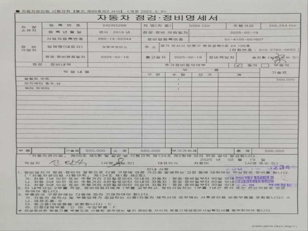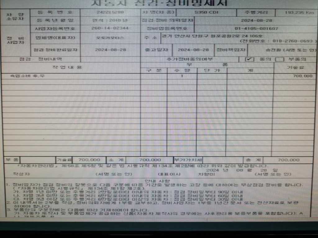 | 차량번호 | ----- | 242러5288 |