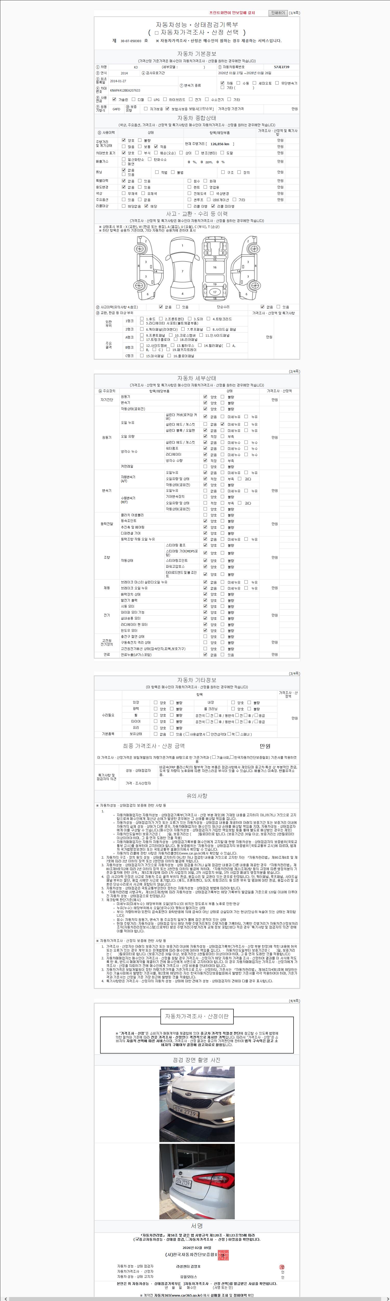 -중고자동차 매매업자를 통해 차량을 구입하실 경우 반드시 "중고자동차 성능, 상태점검 기록부"를 교뷰 받으셔야 하며, 매매업자는 반드시 의무 교부 하여야 압니다.