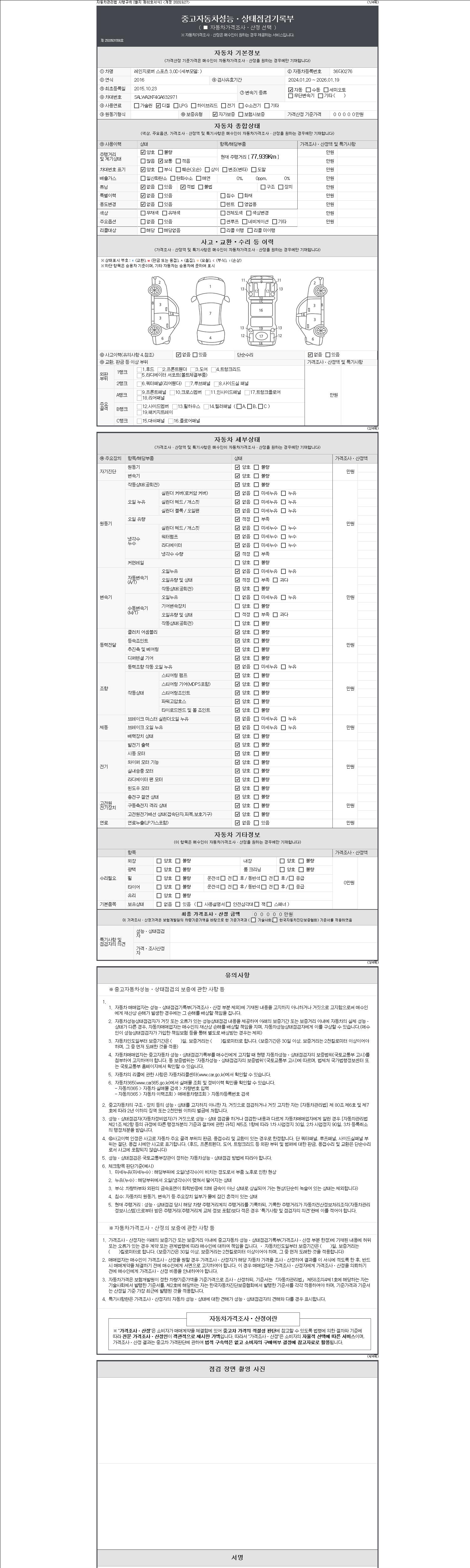 - 2. 차량 등록증이나 성능점검지 등을 상담자에게 요청및 확인하시고 사전에 미리 점검 하시기를 권유드립니다.