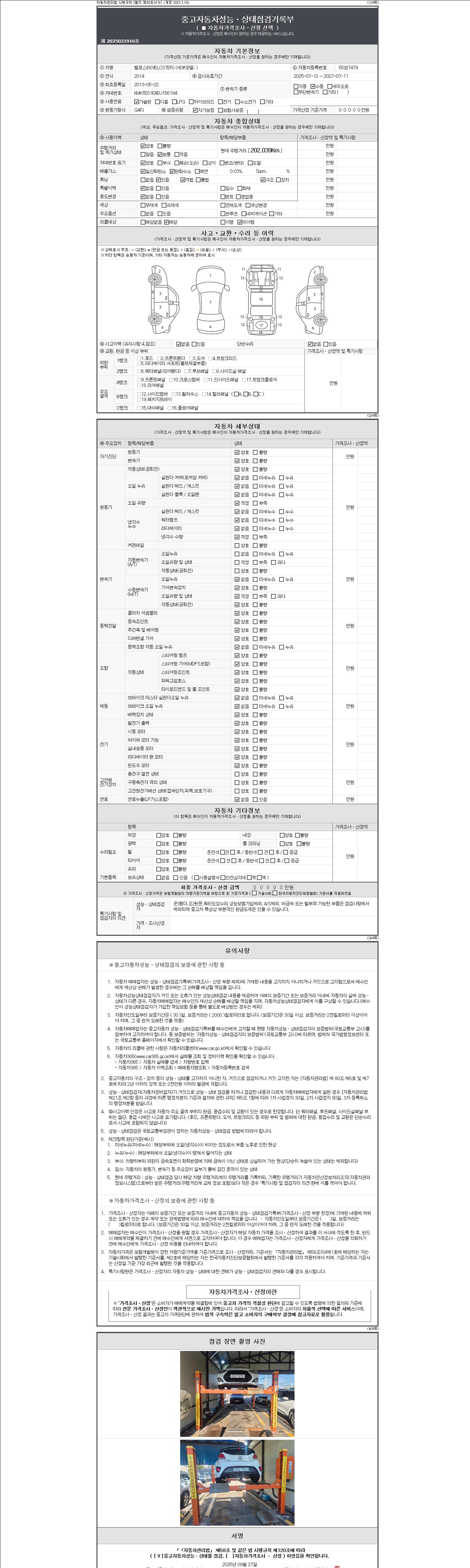- 2. 차량 등록증이나 성능점검지 등을 상담자에게 요청및 확인하시고 사전에 미리 점검 하시기를 권유드립니다.
