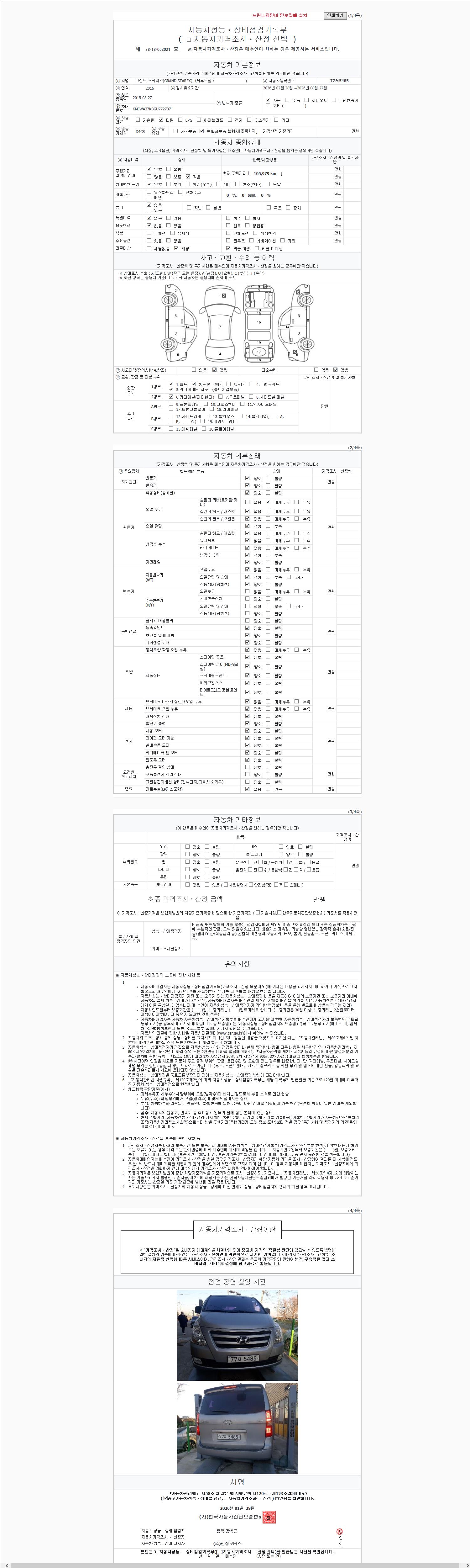 | 주행거리 | 105,979 km | 차량번호 | 77저5485 | 사고유무 | 성능기록부 참조 | 제시번호 | 제 2147483647 호 |