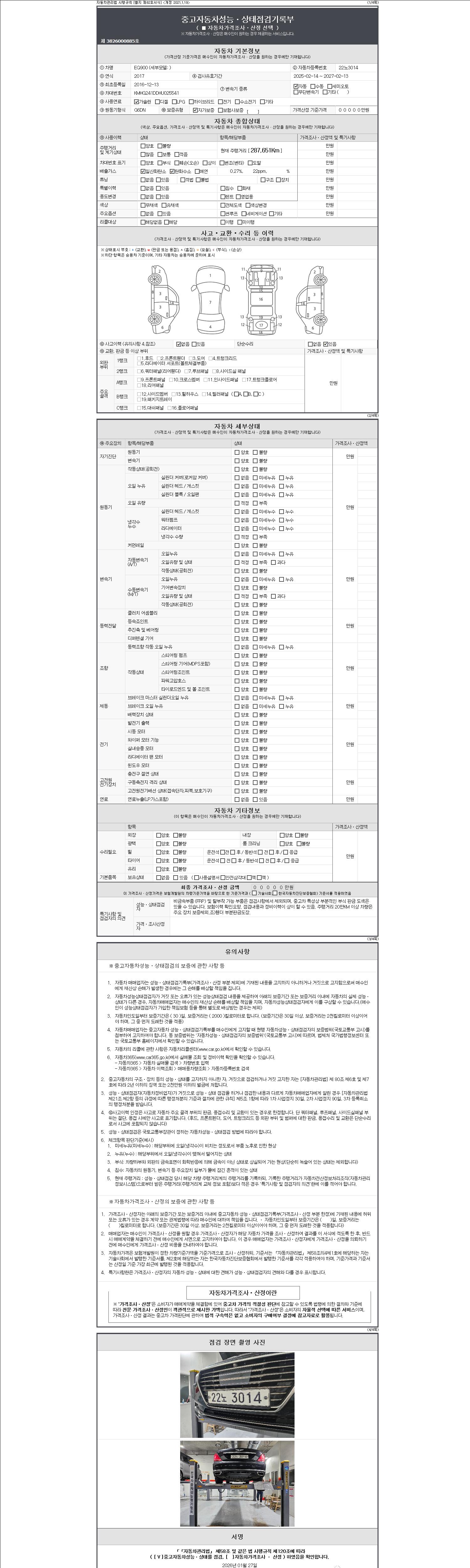 - 2. 차량 등록증이나 성능점검지 등을 상담자에게 요청및 확인하시고 사전에 미리 점검 하시기를 권유드립니다.