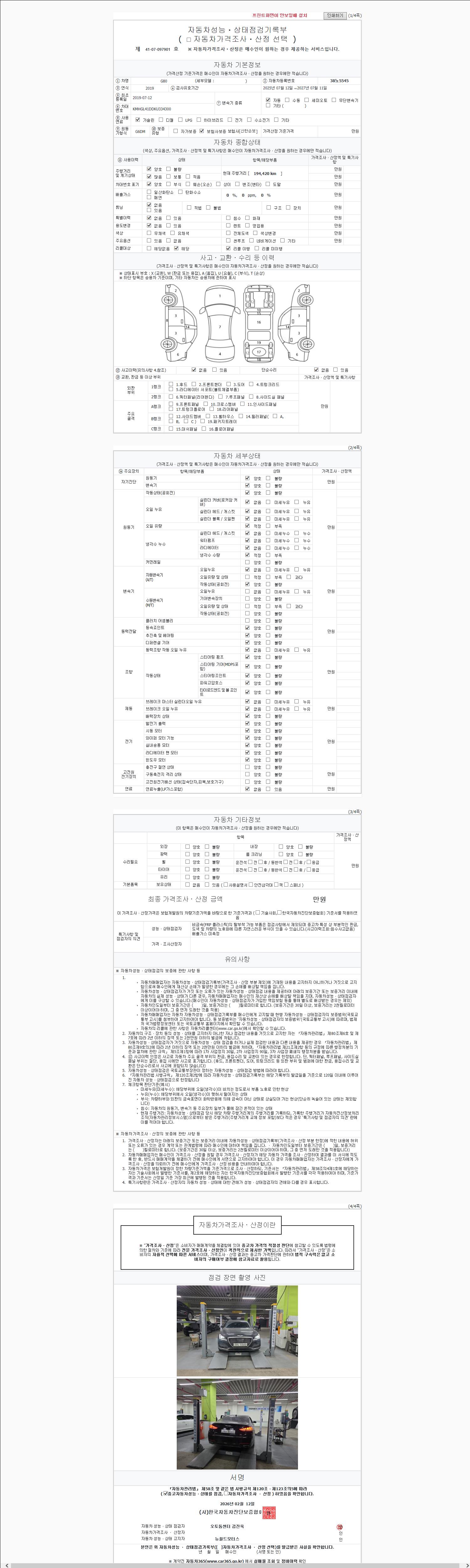 - 2. 차량 등록증이나 성능점검지 등을 상담자에게 요청및 확인하시고 사전에 미리 점검 하시기를 권유드립니다.