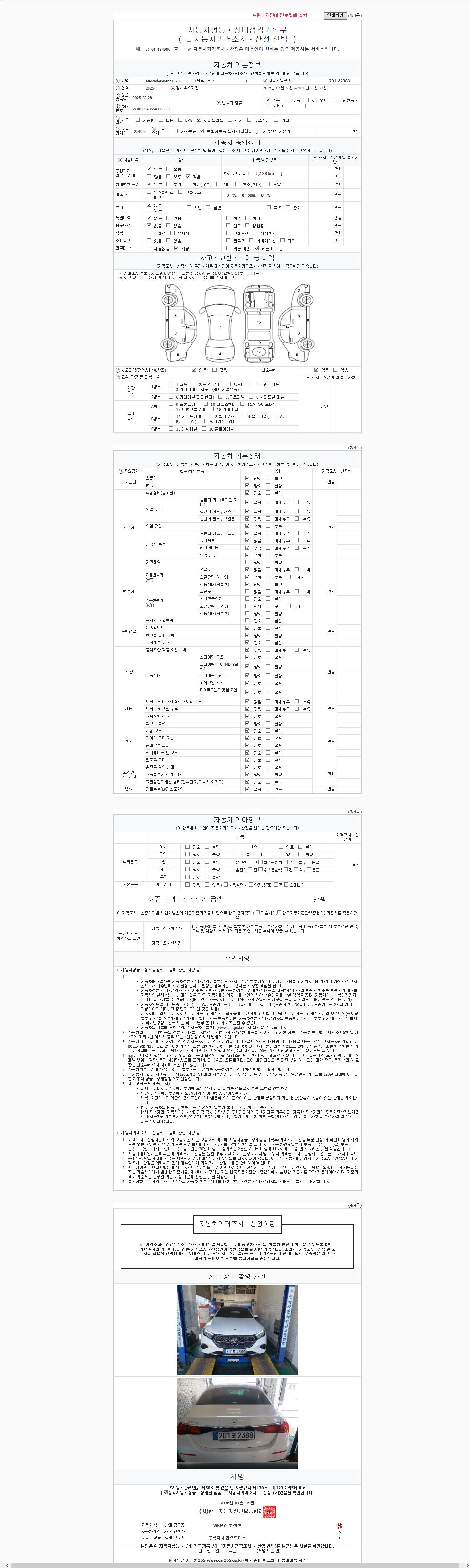 - 사고유무 : 성능기록부 참조
