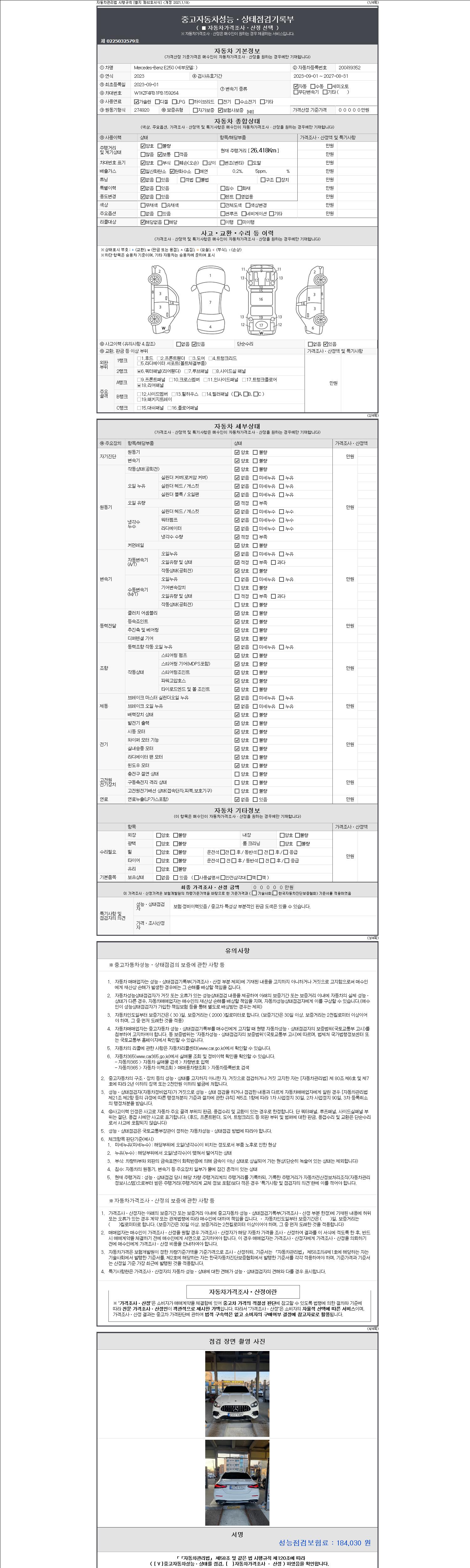 - 사고유무 : 성능기록부 참조