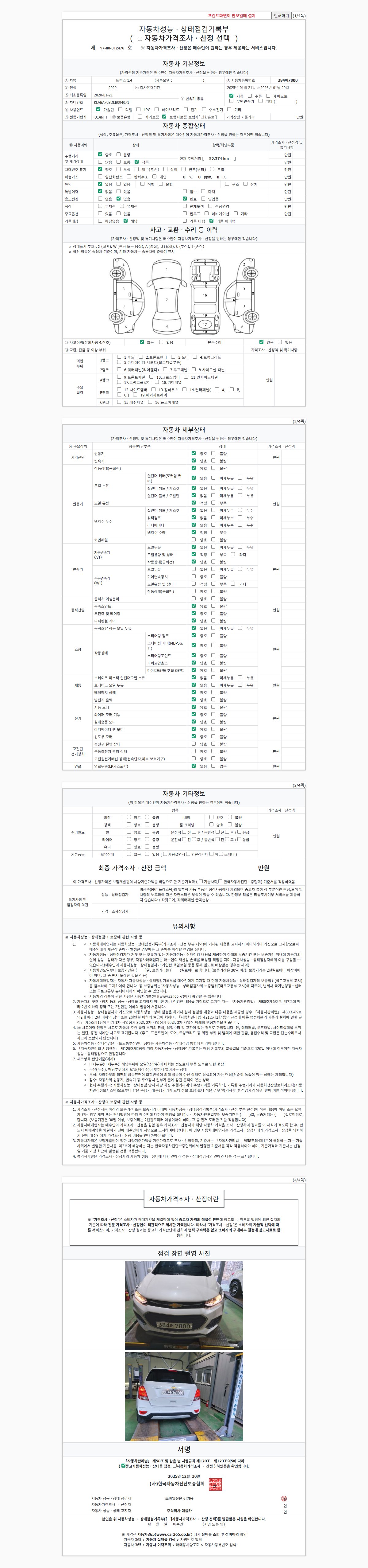 | 주행거리 | 52,288 km | 차량번호 | 384머7800 | 사고유무 | 성능기록부 참조 | 제시번호 | 제 2147483647 호 |