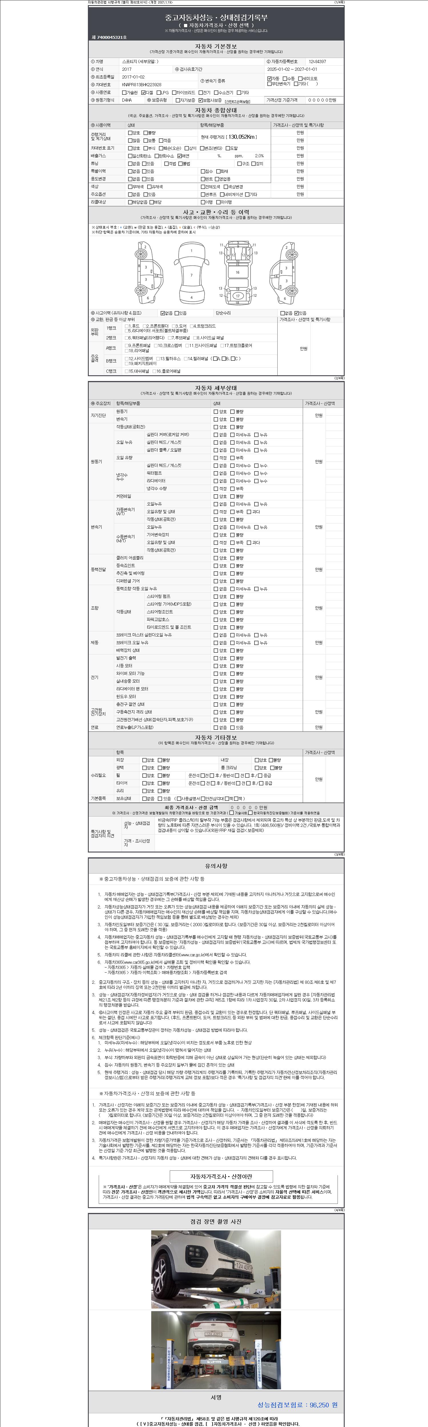 -중고자동차 매매업자를 통해 차량을 구입하실 경우 반드시 "중고자동차 성능, 상태점검 기록부"를 교뷰 받으셔야 하며, 매매업자는 반드시 의무 교부 하여야 압니다.