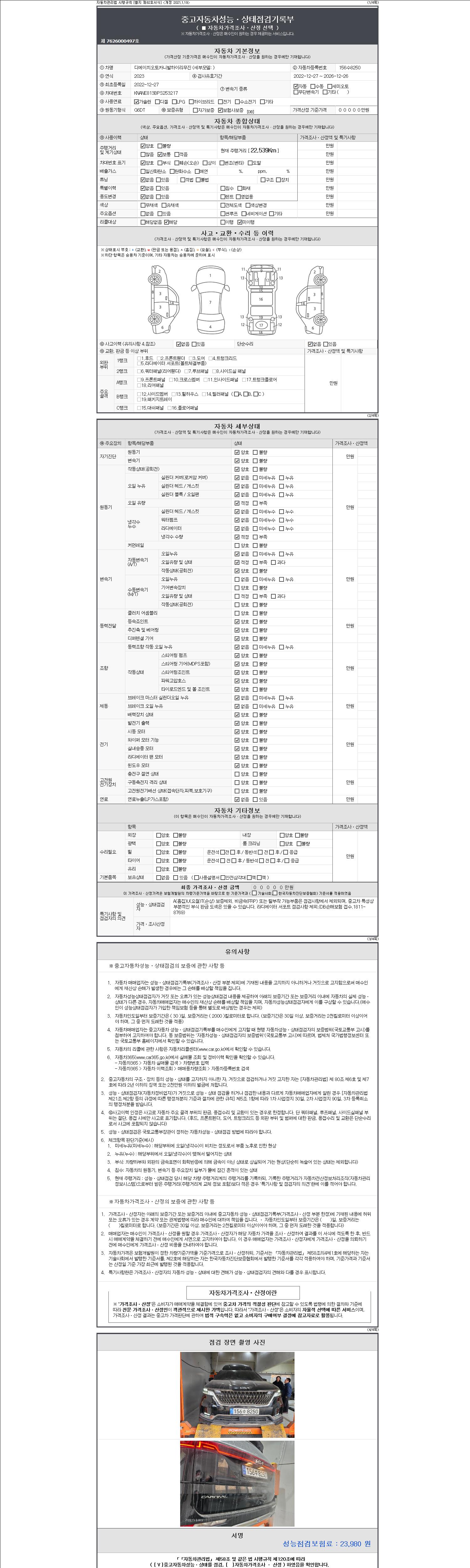 - 2. 차량 등록증이나 성능점검지 등을 상담자에게 요청및 확인하시고 사전에 미리 점검 하시기를 권유드립니다.