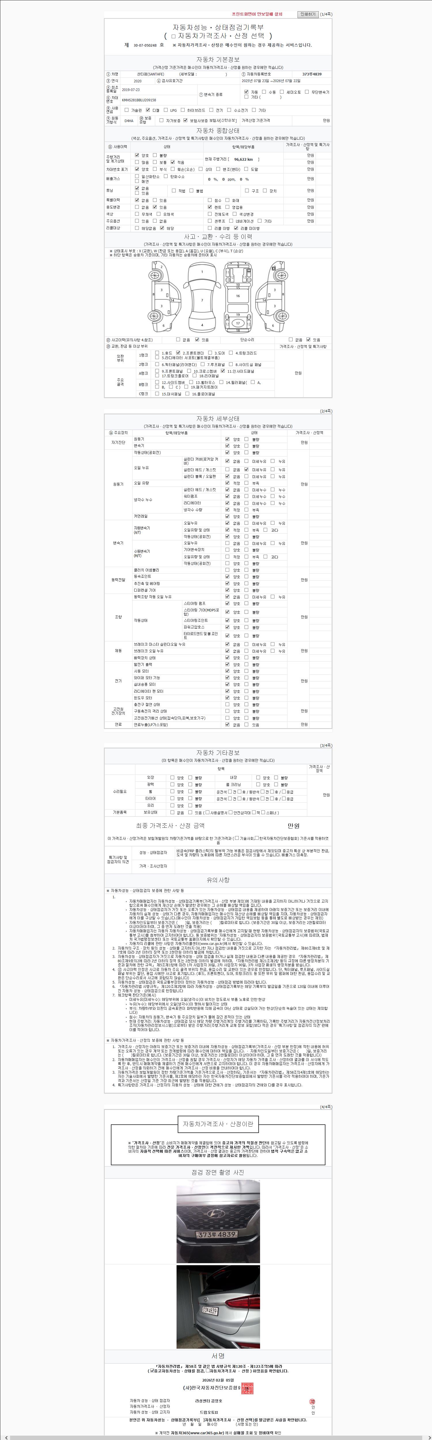 -중고자동차 매매업자를 통해 차량을 구입하실 경우 반드시 "중고자동차 성능, 상태점검 기록부"를 교뷰 받으셔야 하며, 매매업자는 반드시 의무 교부 하여야 압니다.