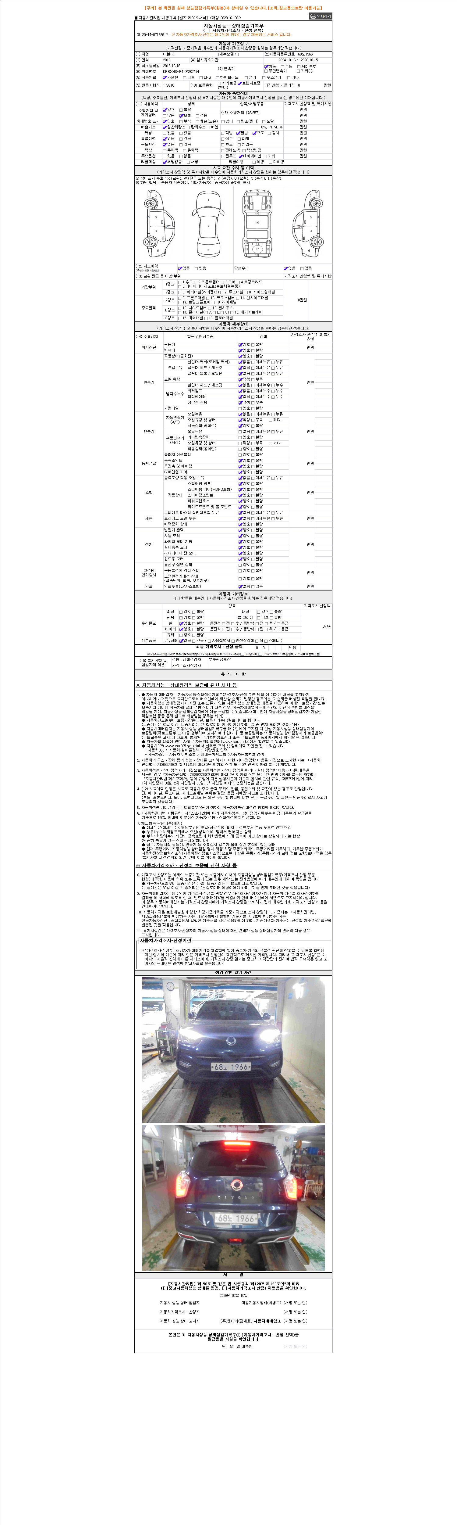 - 2. 차량 등록증이나 성능점검지 등을 상담자에게 요청및 확인하시고 사전에 미리 점검 하시기를 권유드립니다.
