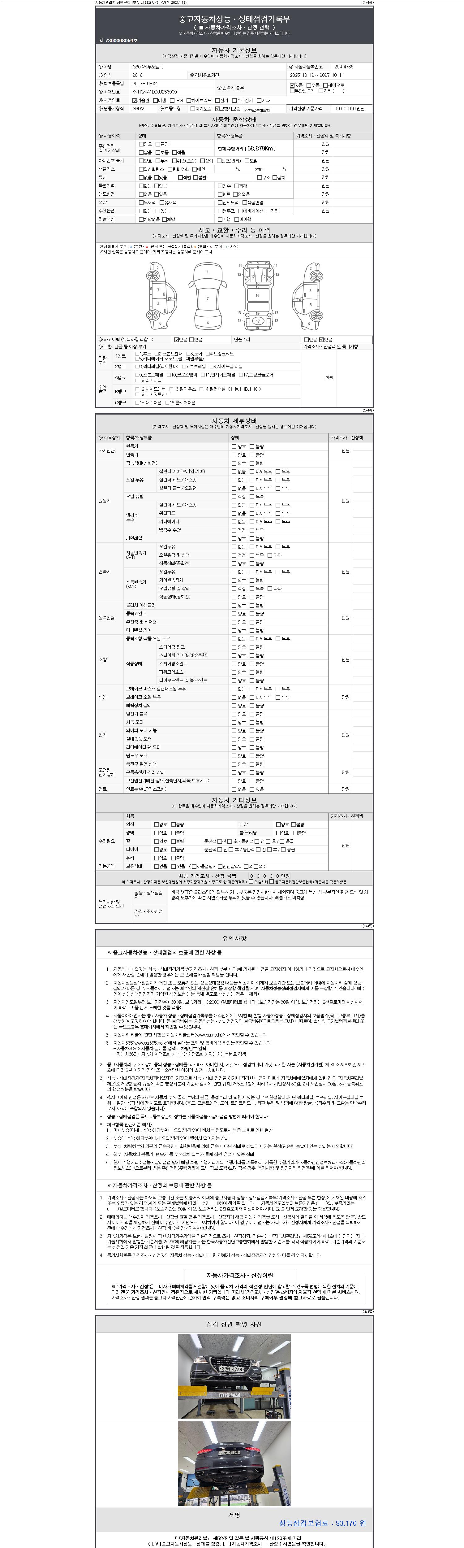| 주행거리 | 68,875 km | 차량번호 | 29버4768 | 사고유무 | 성능기록부 참조 | 제시번호 | 제 2147483647 호 |