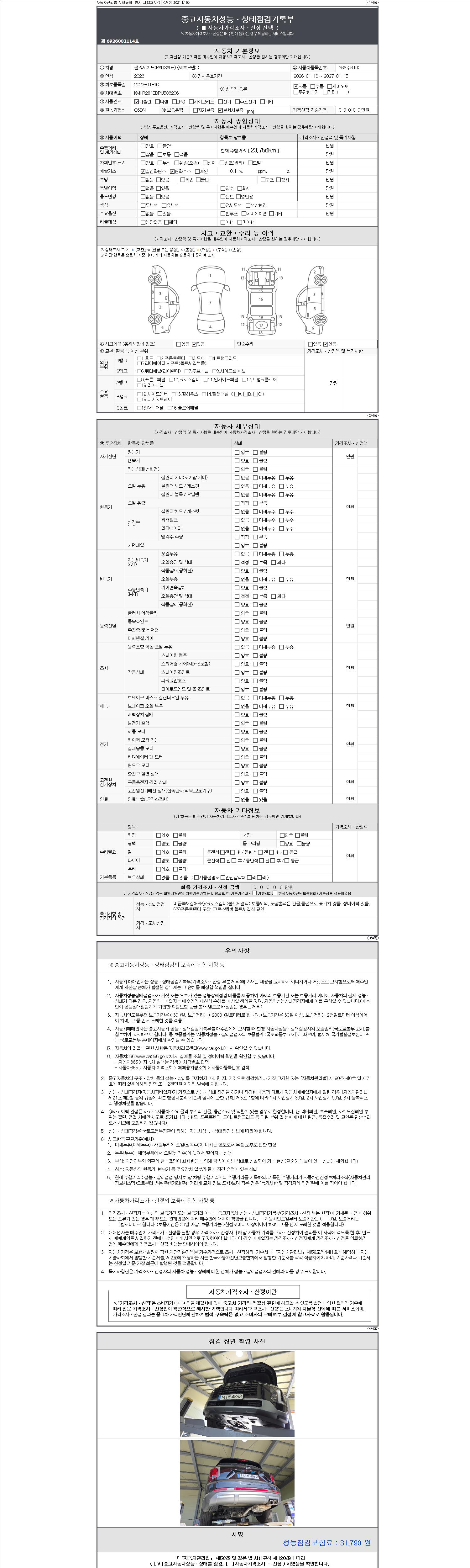 | 주행거리 | 23,756 km | 차량번호 | 368수6102 | 사고유무 | 성능기록부 참조 | 제시번호 | 제 2147483647 호 |