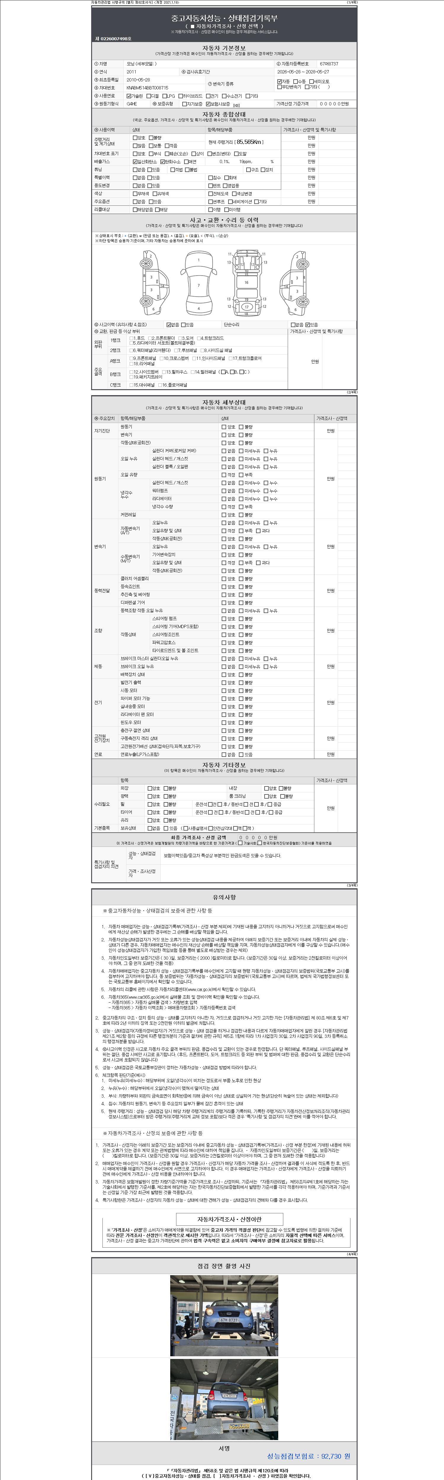 -중고자동차 매매업자를 통해 차량을 구입하실 경우 반드시 "중고자동차 성능, 상태점검 기록부"를 교뷰 받으셔야 하며, 매매업자는 반드시 의무 교부 하여야 압니다.
