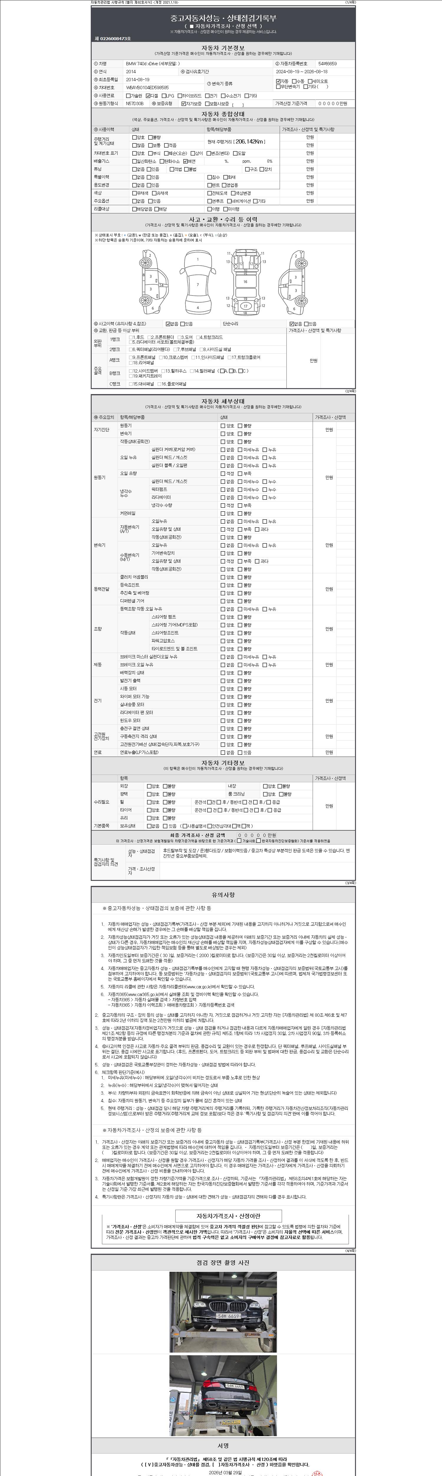 -중고자동차 매매업자를 통해 차량을 구입하실 경우 반드시 "중고자동차 성능, 상태점검 기록부"를 교뷰 받으셔야 하며, 매매업자는 반드시 의무 교부 하여야 압니다.