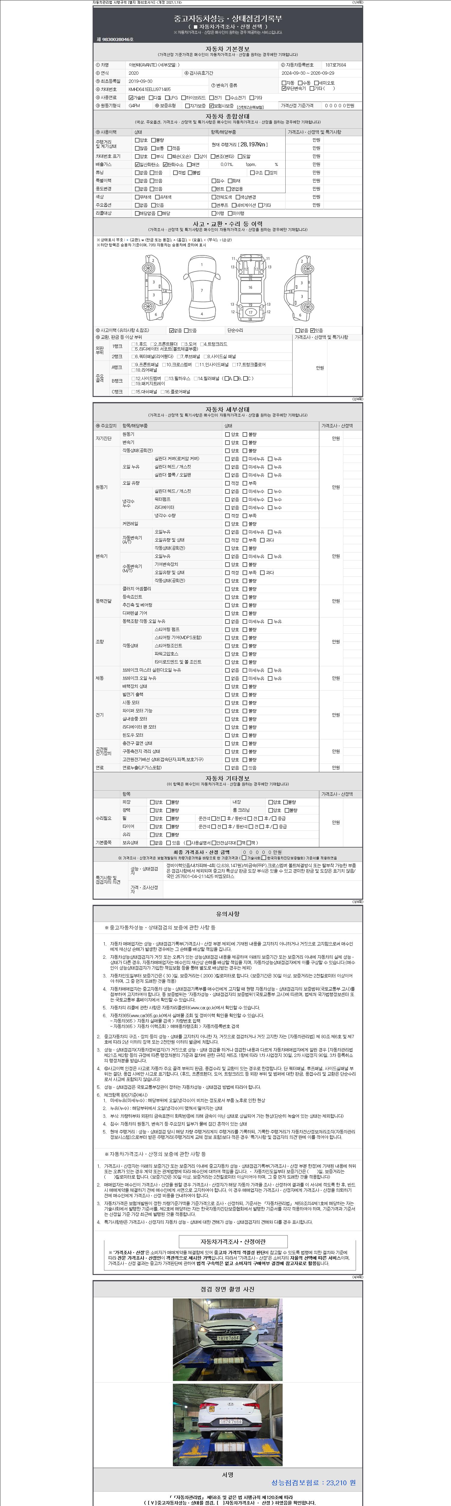 | 주행거리 | 28,197 km | 차량번호 | 187로7684 | 사고유무 | 성능기록부 참조 | 제시번호 | 제 2147483647 호 |
