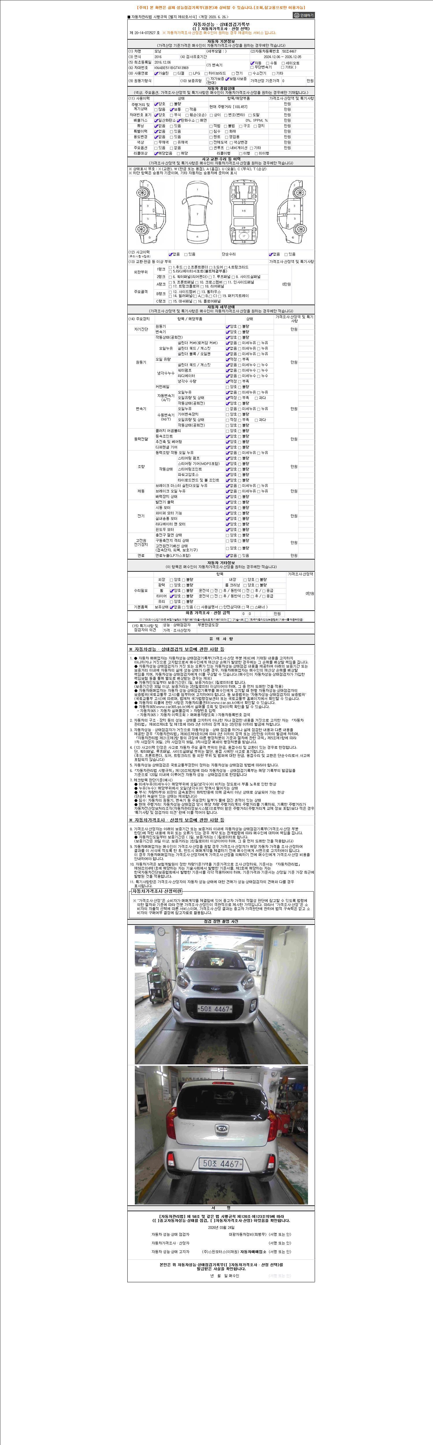 - 2. 차량 등록증이나 성능점검지 등을 상담자에게 요청및 확인하시고 사전에 미리 점검 하시기를 권유드립니다.