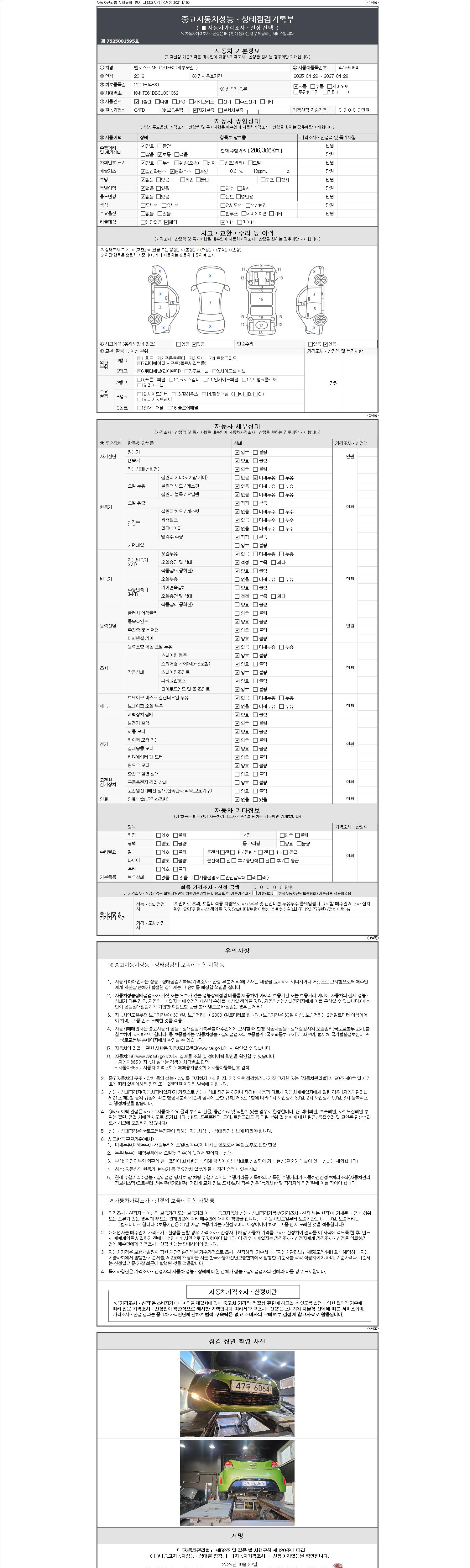 -중고자동차 매매업자를 통해 차량을 구입하실 경우 반드시 "중고자동차 성능, 상태점검 기록부"를 교뷰 받으셔야 하며, 매매업자는 반드시 의무 교부 하여야 압니다.